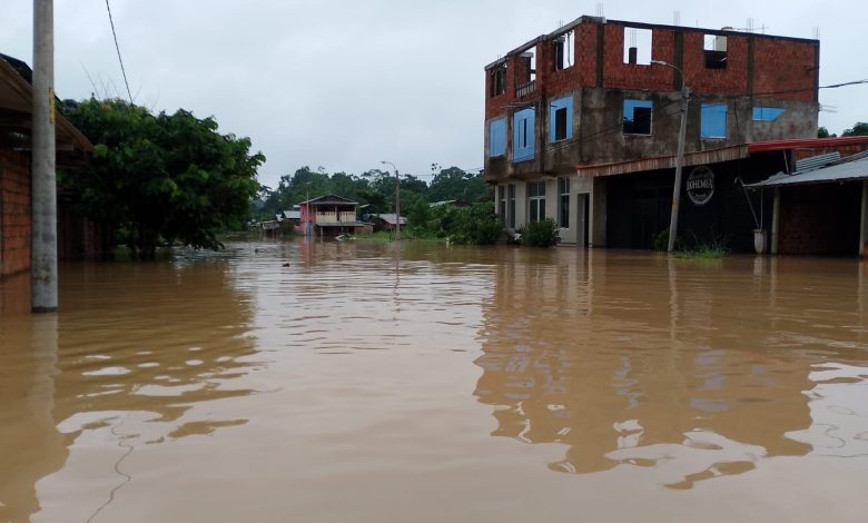 La inundación en esta zona de frontera con Brasil alcanzó a gran parte de la ciudad de Iñapari, por lo que las familias afectadas tuvieron que evacuar a la zona alta, trasladando las pertenencias que pudieron rescatar.